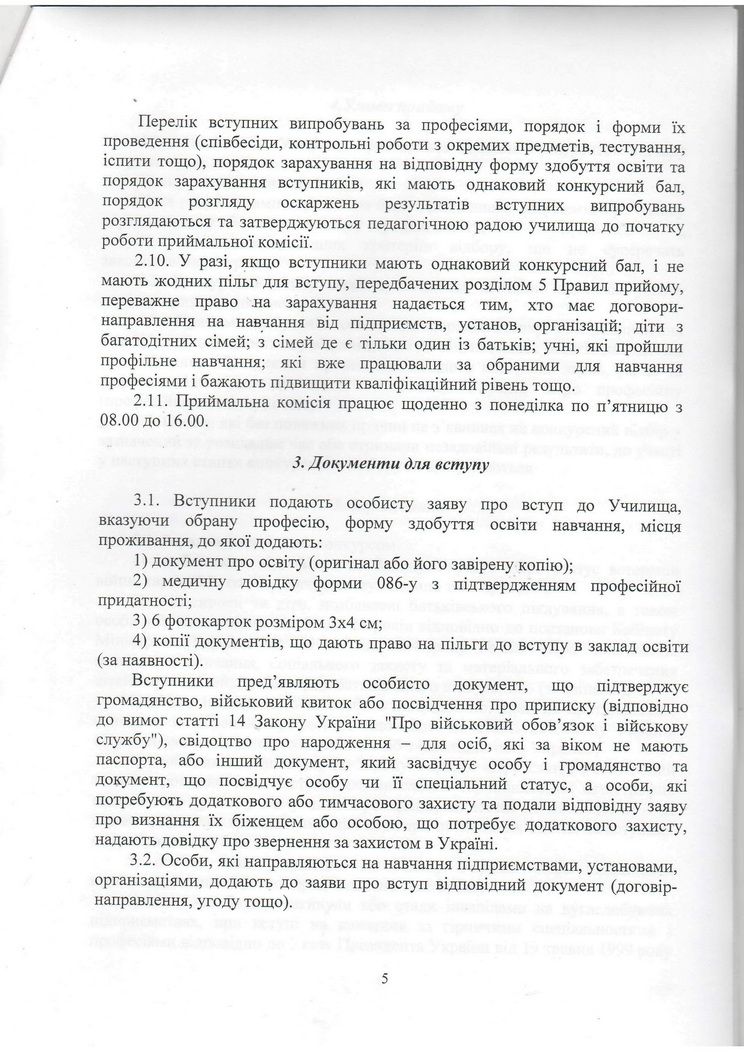 - медична довідка форми 086-У (з відміткою про відсутність протипоказань до оволодіння обраною професію);