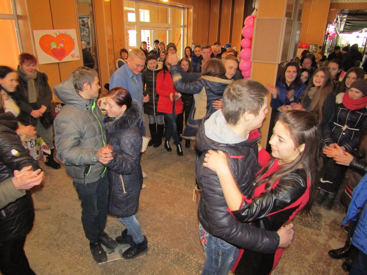 Рано-ранесенько почала працювати святкова пошта, адже «Скринька закоханих» , яка ще вранці була переповнена валентинками. Активісти учнівського самоврядування організували святкову конкурсну програму в якій змагалося 8 учнів (4 пари), а саме: Кашицин Андрій (гр. Еа-15 ), Гуркова А. (гр. К-16), Яковлев Р. (гр. ЕА-16), Заводяна М. (гр. К-16), Хатан І. (гр. НГ-16), Балюк А. (гр. ЕА-15), Сігарьова В. (К-16), Бондар О. (гр. ЕА-15) . Різноманітні конкурси, веселі забави, чарівні танці, мелодійні пісні створили атмосферу радості й тепла. Кожен учасник переконався в тому, що День закоханих – свято чудес, яскравих вражень і кохання. За результатами конкурсної програми переможцями стали : Хатан І. (гр. НГ-16), Балюк А. (гр. ЕА-15). Свято пройшло дуже весело. З одного боку, воно було наповнене легкою невимушеністю і юнацьким запалом, з іншого – хлопці та дівчата проявляли фантазію і винахідливість, виконуючи різні завдання.