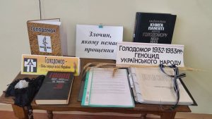 Бібліотекарем міської бібліотеки Рядних І. були висвітлені трагічні події того часу. Викладач історії Горобець М.М. поділилась спогадами свого діда, які викликали багато емоцій в учнів. Бібліотекарем училища Філіпенко О.С. під час огляду літератури були представлені архівні документи, ілюстровані матеріали та спогади очевидців тієї страшної трагедії. Учні переглянули документальний фільм «Голодомор. Великий злам» із серії «Невідома Україна». Наприкінці заходу діти вшанували пам’ять померлих хвилиною мовчання.