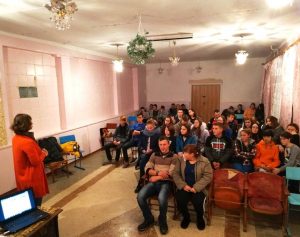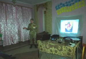 Щоб діти по-справжньому прониклись духом волонтерства, на зустріч був запрошений волонтер з зони АТО Денис Шепелєв. Під час перегляду презентації, він розповідав про дієву допомогу для військових як моральну, так и матеріальну, закликав бути добрішими, надавати допомогу кожному, хто її потребує: сироти, інваліди, люди похилого віку.