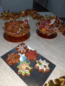 Останні передноворічні дні, святковий настрій внесли корективи і у освітній процес. Кондитери – початківці групи ККД-18 поєднали навчання з виготовленням різдвяних подарунків. Під керівництвом майстрині Ковальової Н.М. учні відпрацьовували навички роботи з пряничним тістом і вирішили створити різдвяні кошики для своїх рідних. Дивлячись на результат, очевидно, що хлопці і дівчата вкладали душу у свою працю, адже вироби призначались найріднішим. Переконані, їм смакувало!