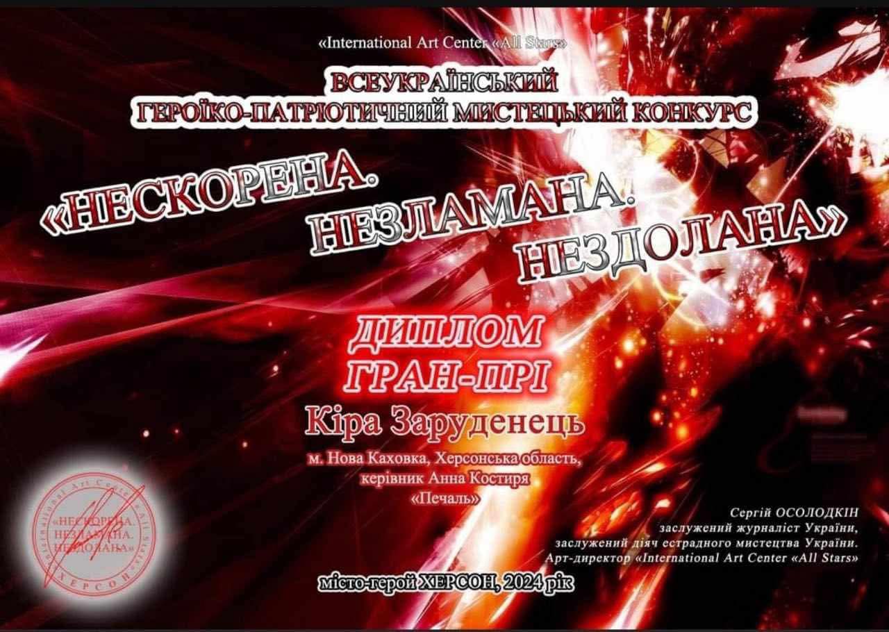 Це історія нашої учениці, однієї з багатьох, на долю якої випали тяжкі випробування. В ній все наше сьогодення – окупація, визволення, життя на лінії розмежування, переїзд. Та головне, що вражає – це нескореність окупантам, наполегливість, прагнення до кращого, позитивність нашої молоді.З ними є майбутнє у нашої країни, та й усього світу!
