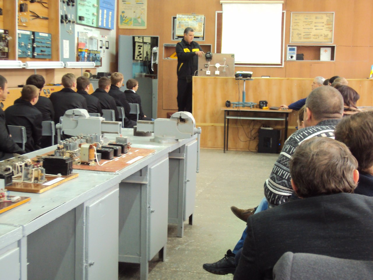 16 грудня на базі училища був проведений круглий стіл майстрів і викладачів по обміну досвідом з теми «Використання ІКТ у навчальному процесі з професії « Електромонтер з ремонту та обслуговування електроустаткування»» . Захід організовано Кір’язовою В.Л., методистом НМЦ ПТО у Херсонській області . Для гостей училища відкриті уроки провели викладач спецдисциплін Крутикова С.Ф. і майстер в/н Павлівський В.І. , які продемонстрували використання інформаційних технологій на різних етапах уроку і для вирішення різних завдань: для візуалізації навчального матеріалу, для створення проблемних ситуацій, для перевірки знань учнів і як презентація самостійної дослідницької роботи учнів.