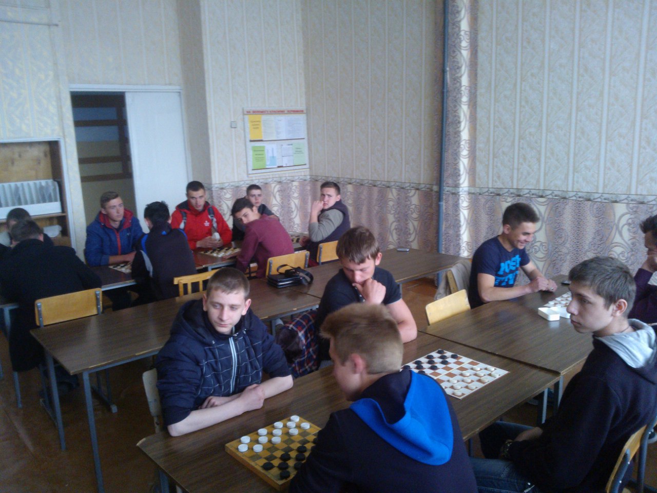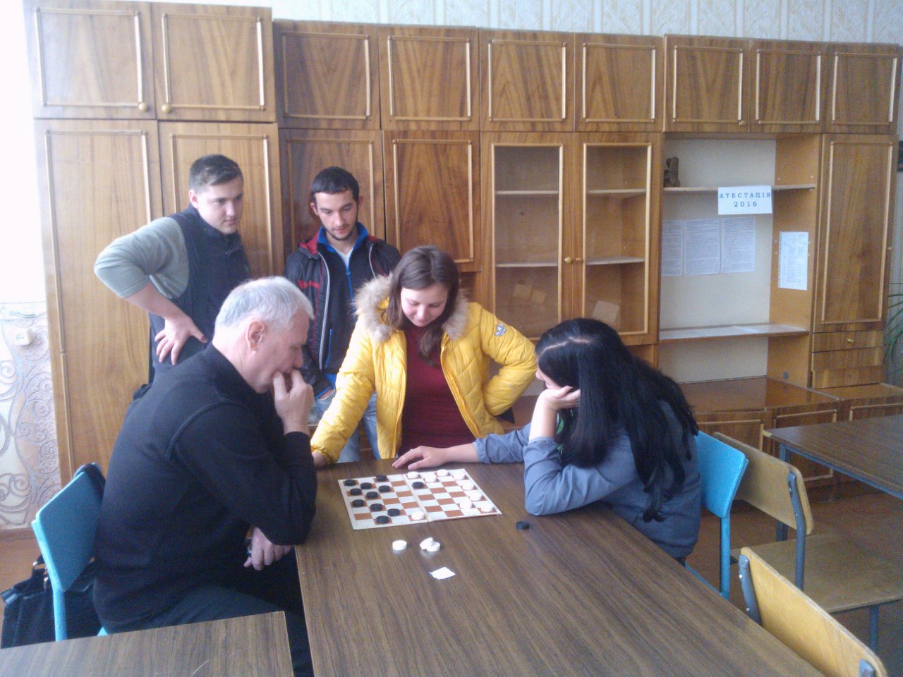 Минулий тиждень запам’ятався учням ДНЗ «ПТУ – 14 м. Нова Каховка» знаменною подією. В між святкові дні практичний психолог училища Ражева І.Ю. разом з керівником фізичного виховання Ходусом І.І. організували та провели змагання на першість училища з шашок. Захід був приурочений Дню перемоги, та проходив під гаслом «Краще змагатись на спортивному полі, ніж на полі бою!». Змагання викликало в учнів неабиякий ажіотаж – бажаючих взяти участь було більше, ніж очікували організатори. Але все ж було відібрано 20 учасників – 17 юнаків та 3 дівчинки. Хлопці змагалися за олімпійською системою, дівчатам довелося грати по круговій системі.