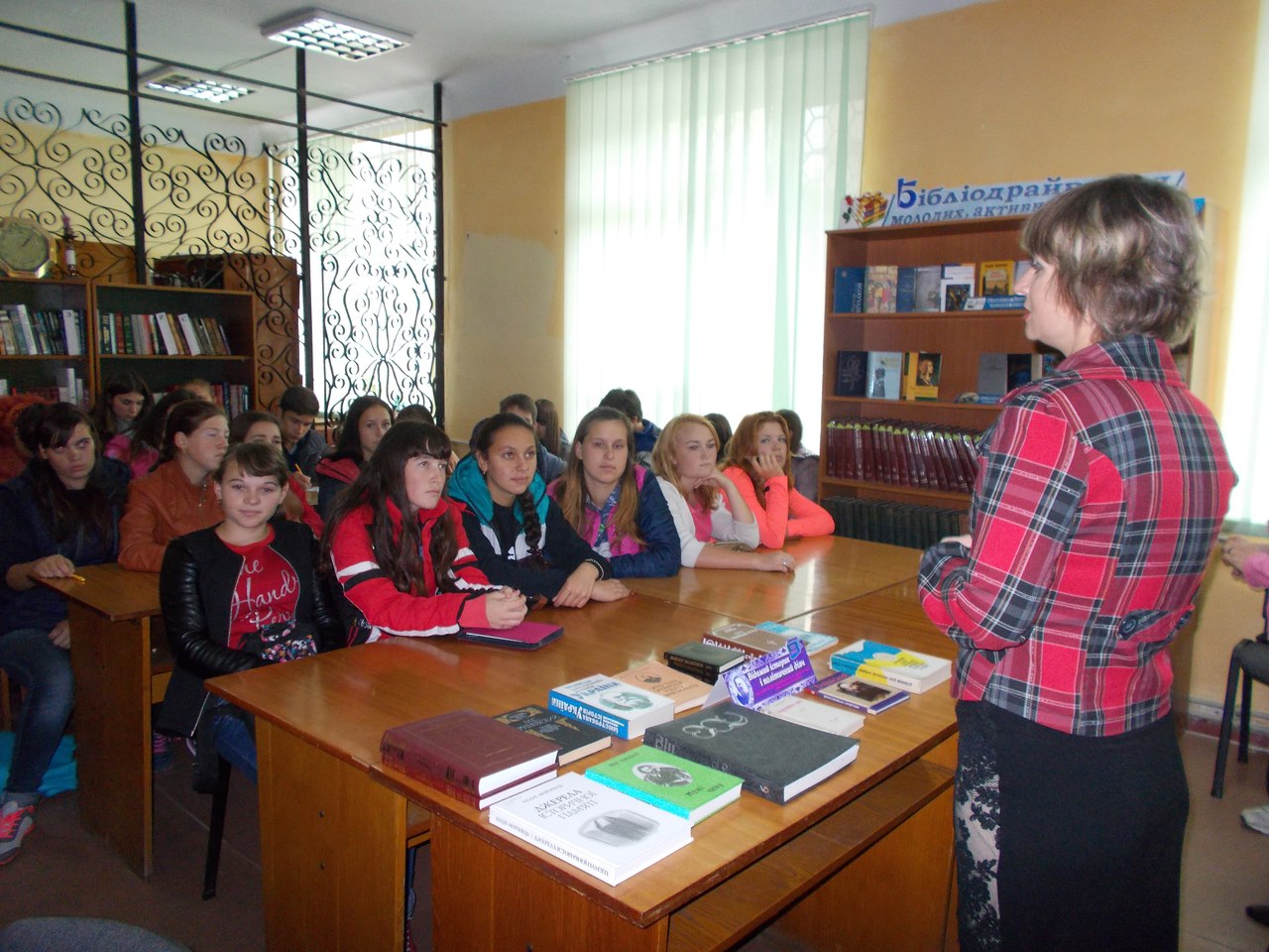 27 вересня завдяки спільній роботі бібліотекаря училища Філіпенко О.С. та бібліотекарів Юнацької бібліотеки наші учні мають розширений доступ до інформаційних джерел, що дають змогу отримати більш змістовні та вичерпні відповіді на питання, що цікавлять молодь. Для учнів гр.К-16 , класний керівник Красуляк Т.С. була підготовлена та розкрита важлива і актуальна тема . Підлітки ознайомились з біографією та творчістю М.Грушевського. Захід називався Вечір- портрет «Ідеолог державної незалежності України», який був привчений 150-річчя від дня народження М.С.Грушевського, українського історика. На зустрічі була використана медіотехніка, під час розповіді лунали народні пісні часів війни. Захід був спрямований на виховання патріотизму в юних читачах. Працівники бібліотек докладали максимум зусиль, аби пробудити в дітях , бажання знати свою історію, ознайомити та зацікавити, за допомогою літературної виставки провести популяризацію історичної літератури.