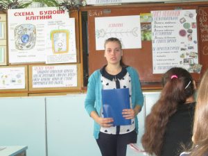 Кованова Тетяна Олексіївна проводила урок біології з теми «Віруси». Це була віртуальна екскурсія учнів групи К-16 у царину вірусів. Під час зупинок на станціях «Пізнавальна», «Історична», «Гіпотетична», «Архітектурна», «Позитивна» учні отримували знання про походження вірусів, будову, види та вплив на організм людини. Упродовж подорожі учні заповнювали Листи пізнання, в яких зібрана вся інформація з теми уроку. Для визначення рівня усвідомлення навчального матеріалу викладач використала прийом «фішбоун». Це один із способів розвитку критичного мислення учнів, коли вони аналізують явище чи процес з різних боків і роблять аргументовані висновки. На уроці біології учні добирали аргументи до питання : «Вірус – це речовина чи істота?». Урок був ілюстрованим, джерелом інформації на ньому був не лише вчитель, а й зацікавлені учні, які заздалегідь дослідили запропоновані теми.