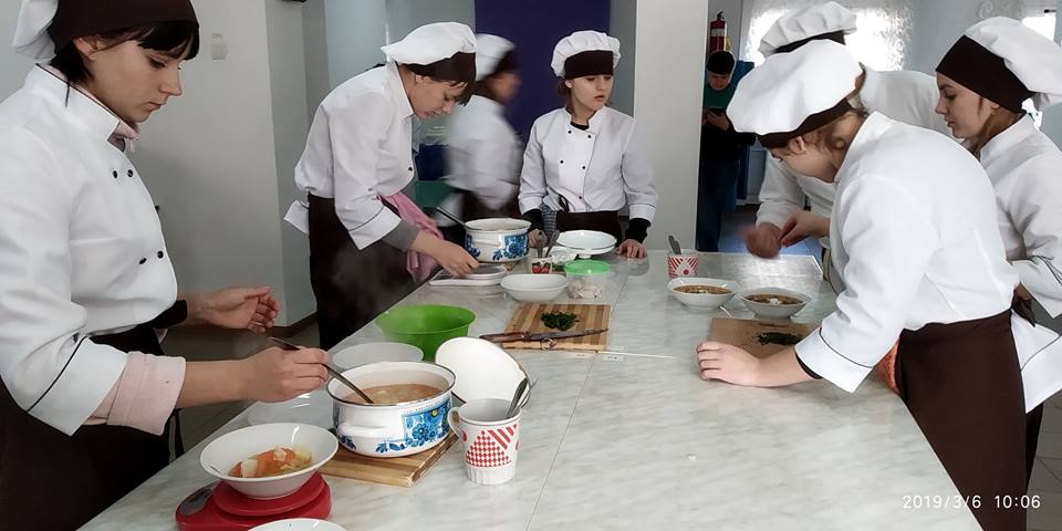 Під таким девізом пройшов урок виробничого навчання в групі ККД-18. Учні вдосконалювали вміння і навички з теми «Приготування супів. Юшка селянська». Майстер в/н Н.М.Ковальова запропонувала бригадам змагання на кращу страву. Учні працювали визначений час за технологічними картками. На загальний результат впливали знання теоретичного матеріалу, дотримання технологічного процесу і вимог безпеки праці, дотримання норм часу,культура праці, смакові якості та подача страви.