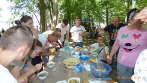 сторони, беручи участь у всіх локаціях, а саме: презентація назви і девізу команди, молодіжна пісня, синхронна фізкультурна зарядка. А нашу юшку, приготовану з особливим соусом – льоком – за рецептом українських козаків, будуть згадувати всі, кому довелося скуштувати цю смачну страву.